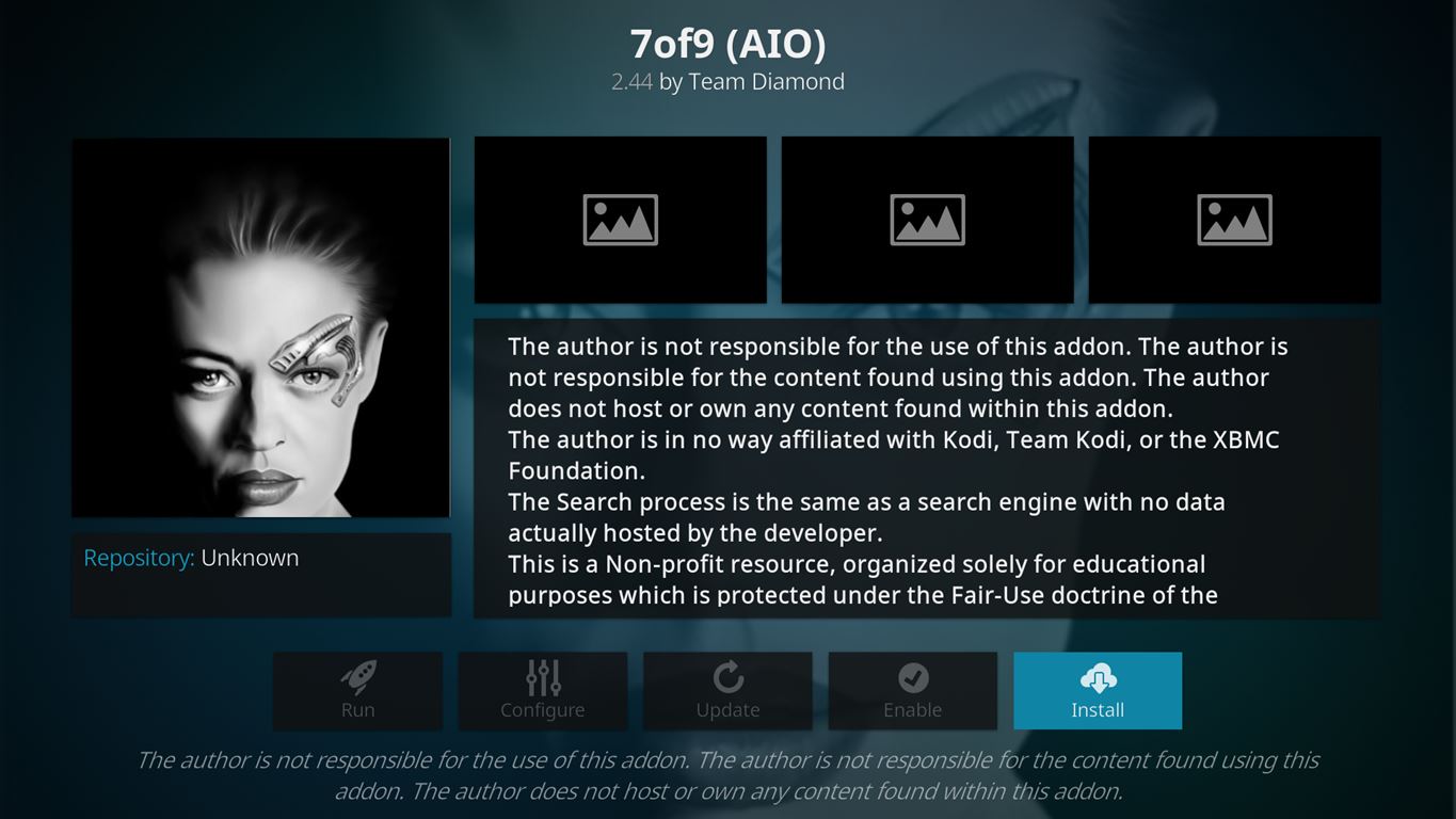 The 7of9 (AIO) Kodi add-on is is an all-in-one add-on from the Diamond repo and is themed based off of everyone’s favorite Star Trek borg character, 7of9.