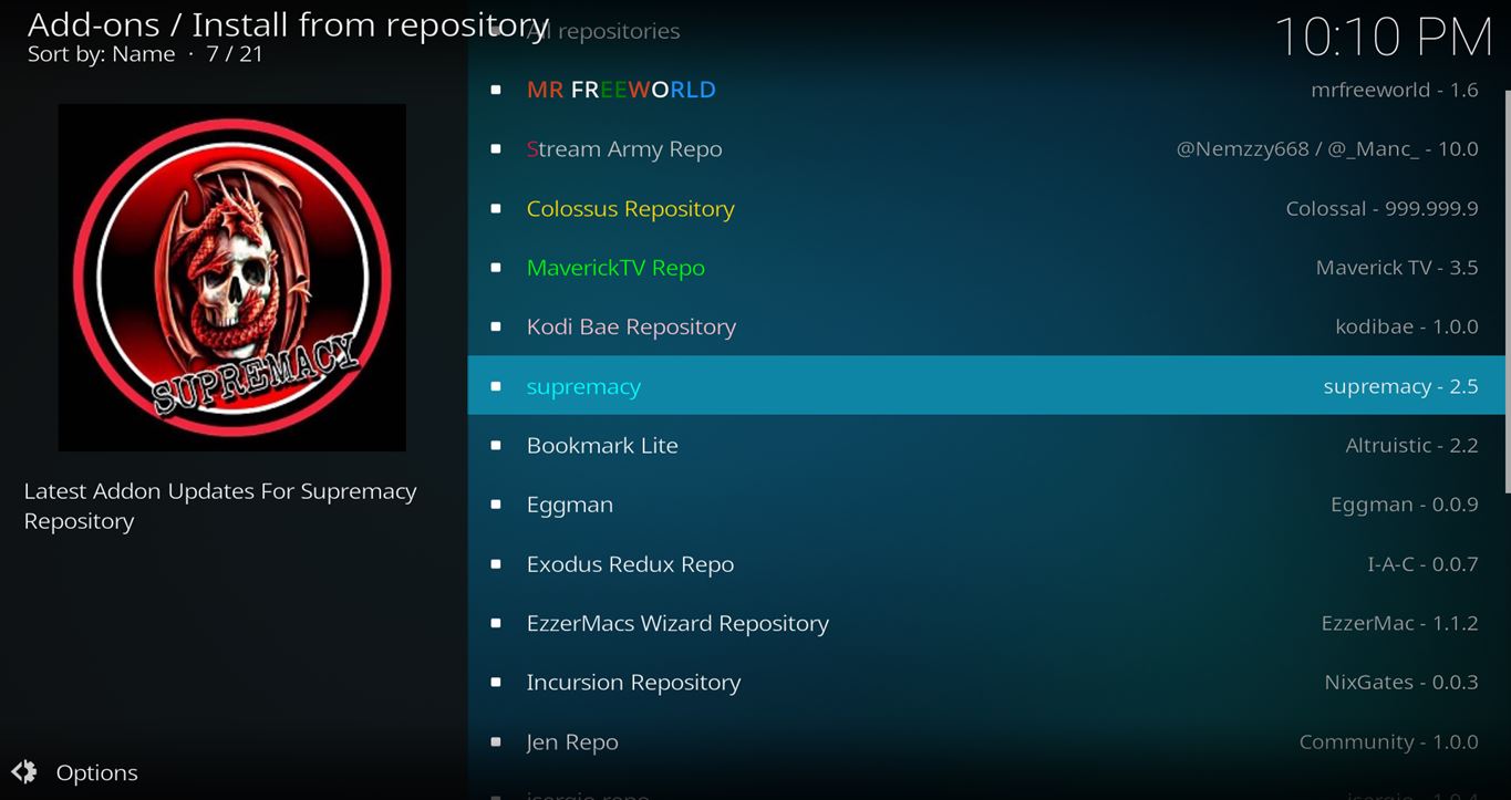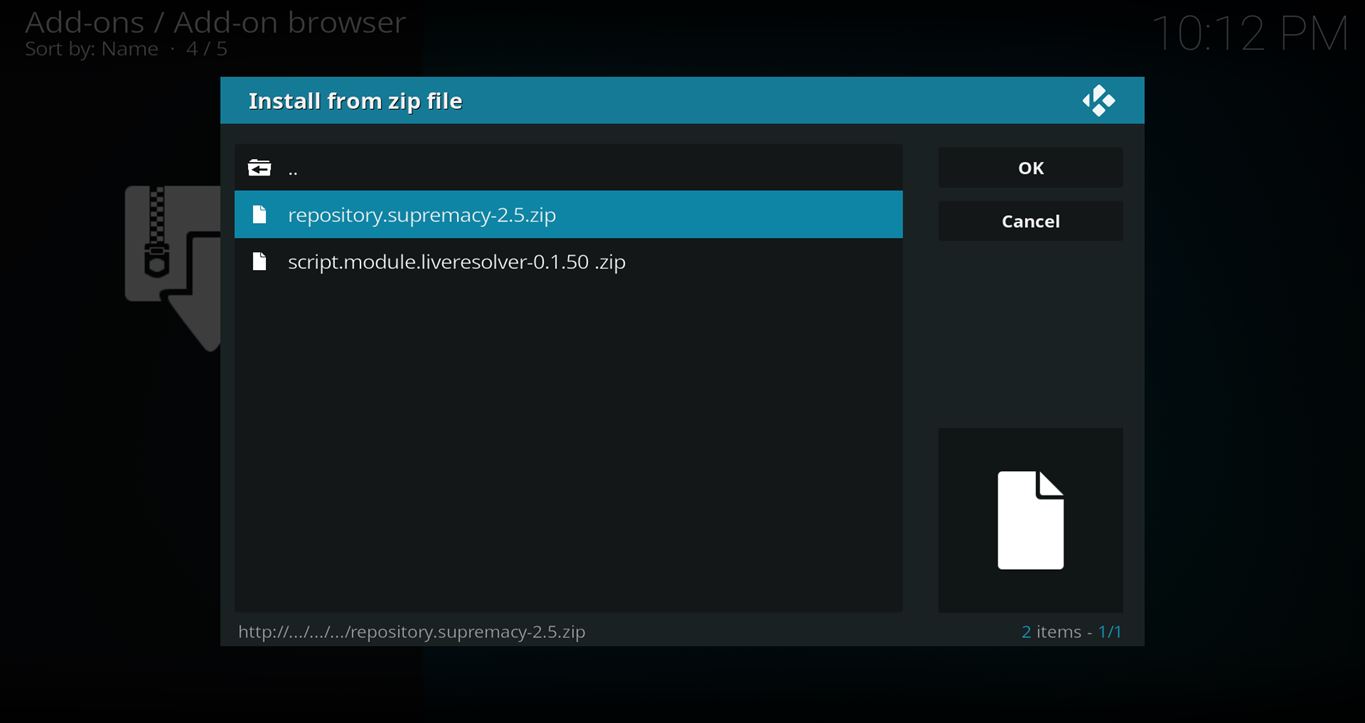 - Now, go to the Settings > Add-ons > Install from Zip File > Supremacy > repository.supremacy-x.x.zip