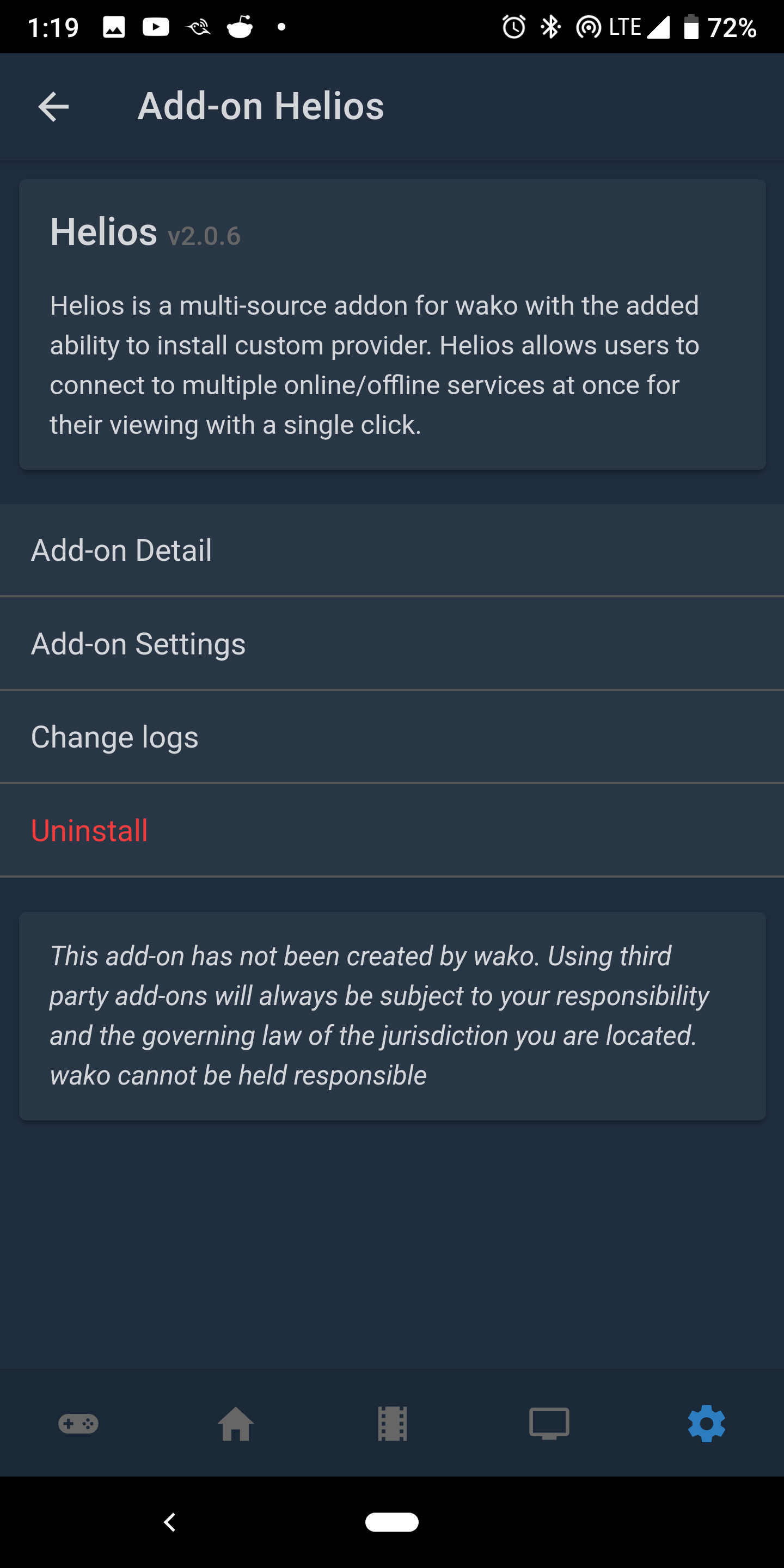 After installing the Helios add-on in Wako, tap on it, and then tap on “Add-on Settings“.