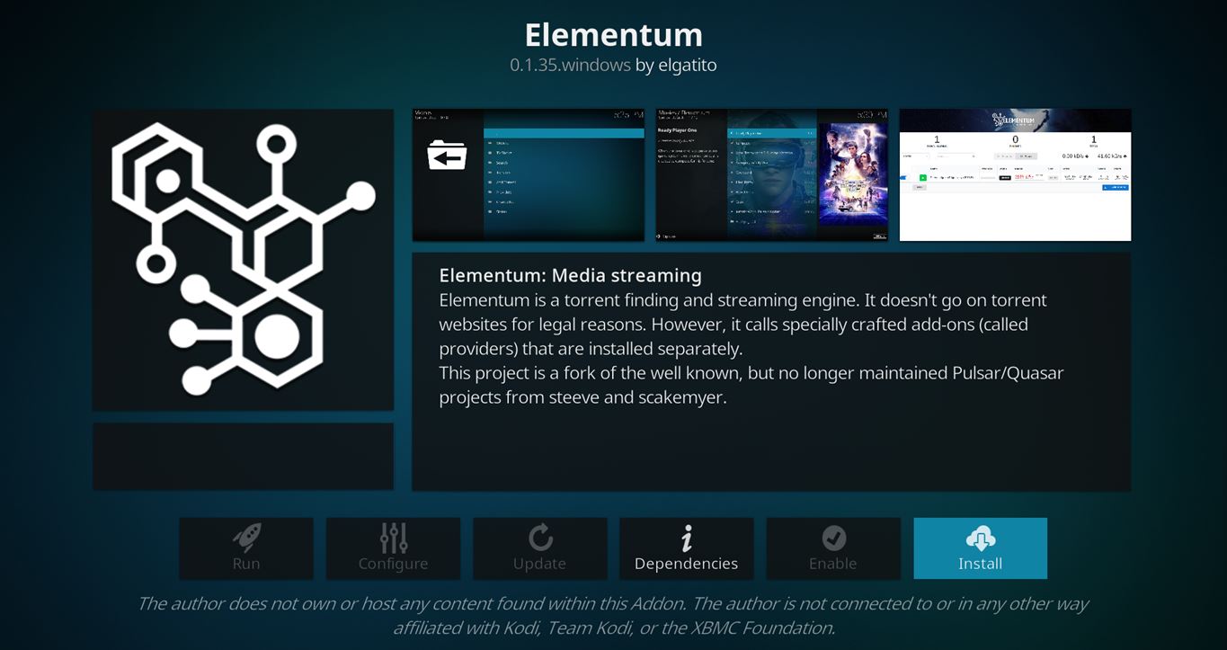 The Elementum Kodi add-on is a torrent finding and searching engine. It doesn’t go on torrent websites for legal reasons. However, it calls specifically crafted add-ons (called providers) that are installed separately.