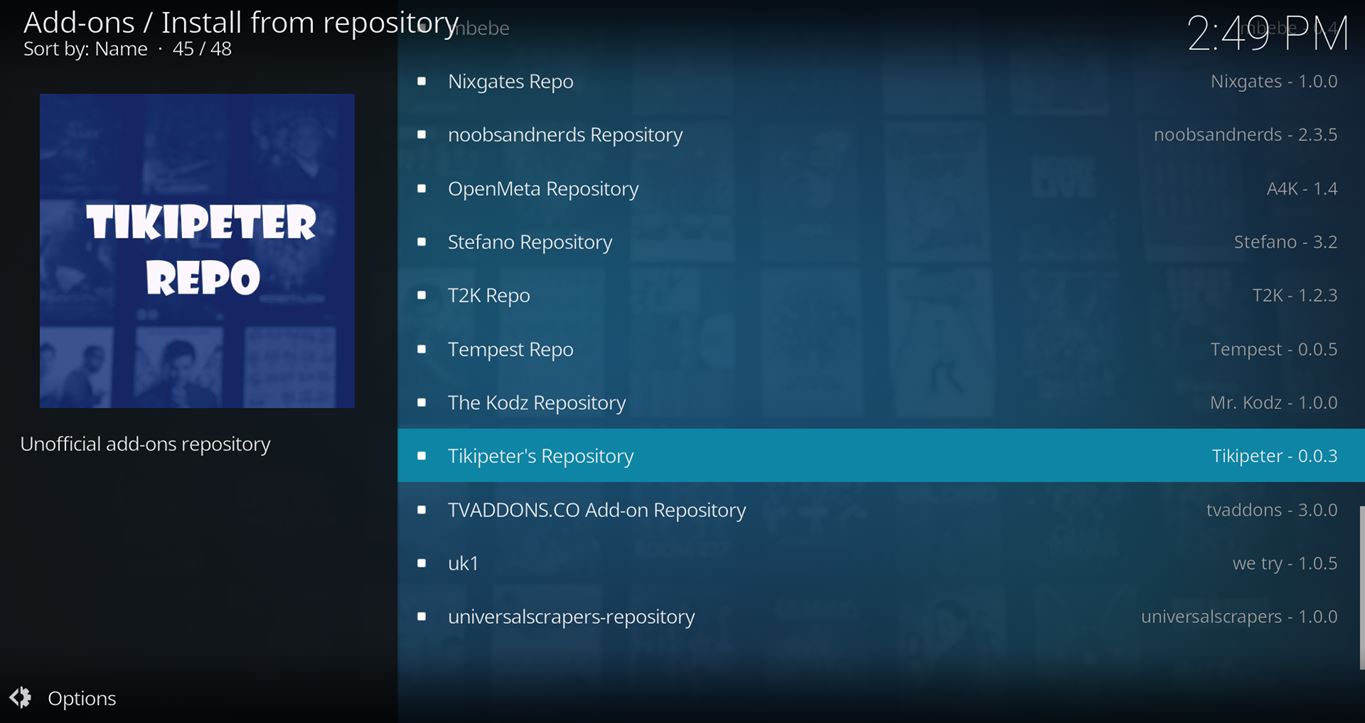 - Now, go to the Settings > Add-ons > Install from Zip File > KinkeadTech > repository.tikipeter-0.0.6.zip