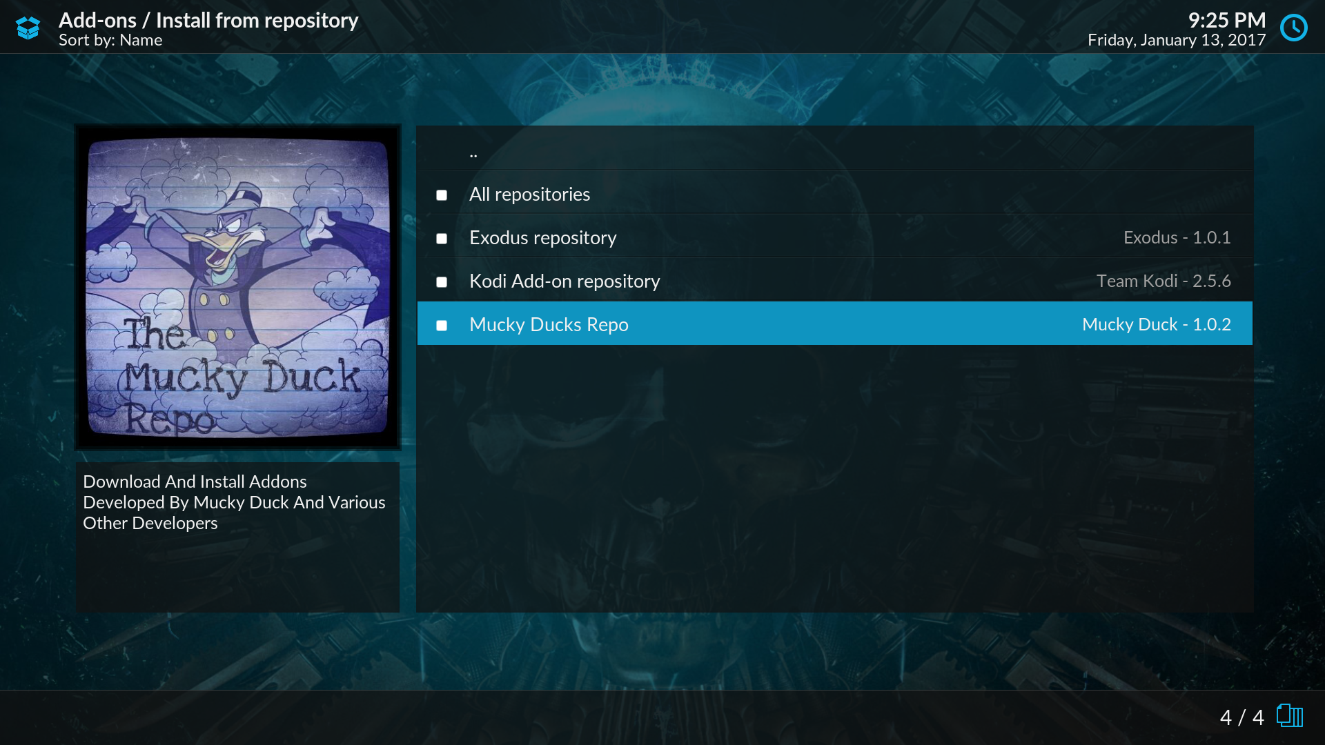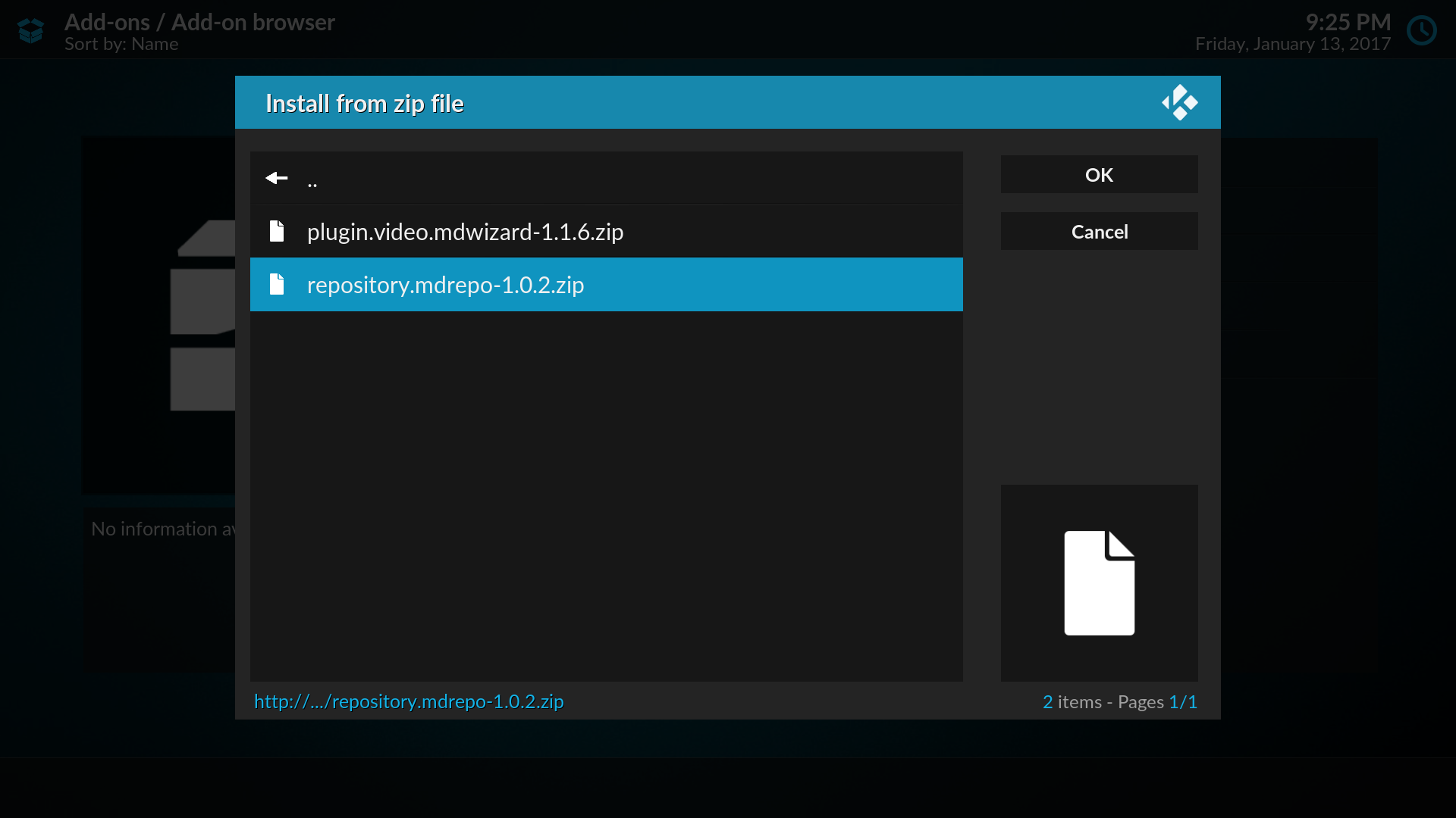 - Select Install from zip file > muckys > repository.mdrepo-x.x.x.zip
