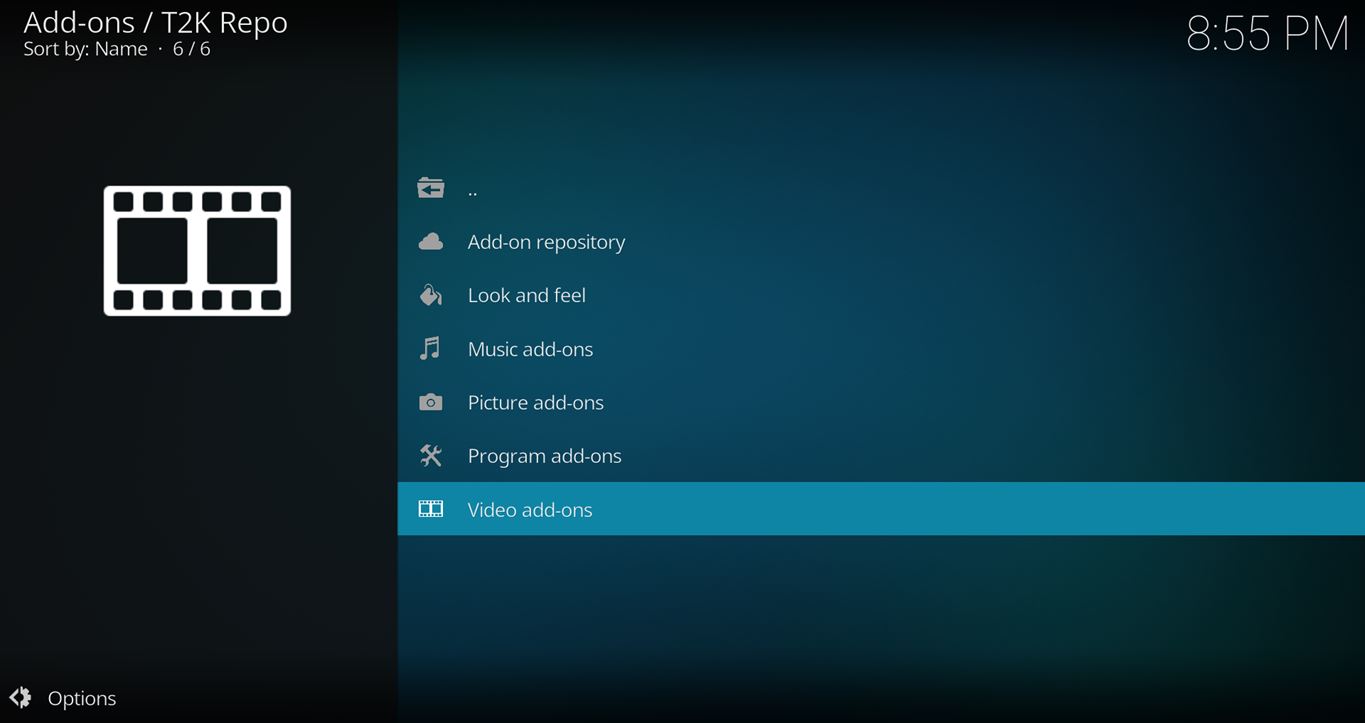 - After you have the t2k Repo installed, go back to the Settings > Add-ons screen and select Install from Repository > t2k Repo > Video add-ons > IT > Install