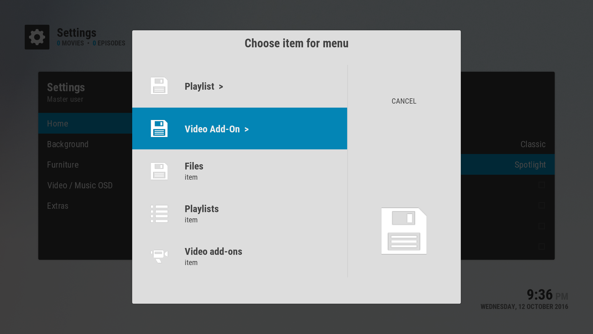 Then, it will have you browse to the page within Kodi that it will use to feed the Spotlight Widget.