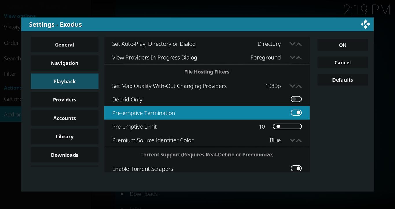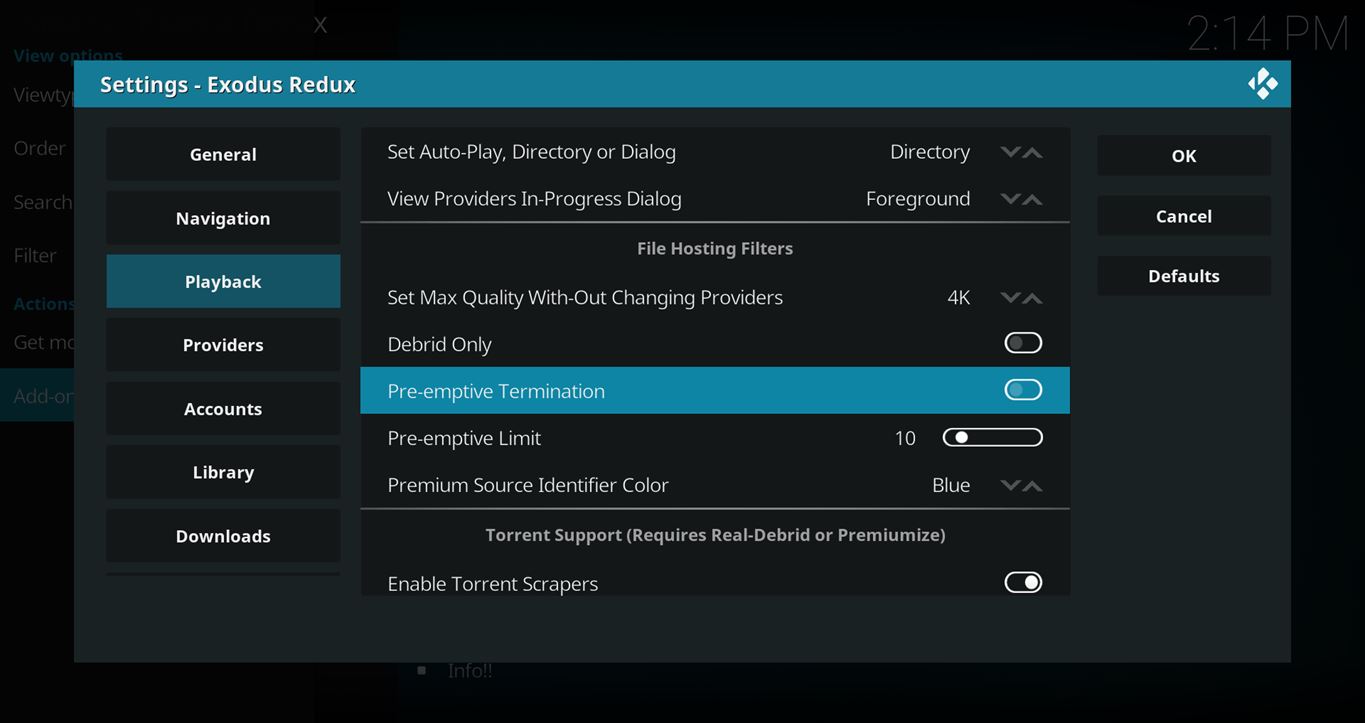 Here is a list of popular Kodi streaming add-ons that have the pre-emptive termination feature and where the setting can be found…