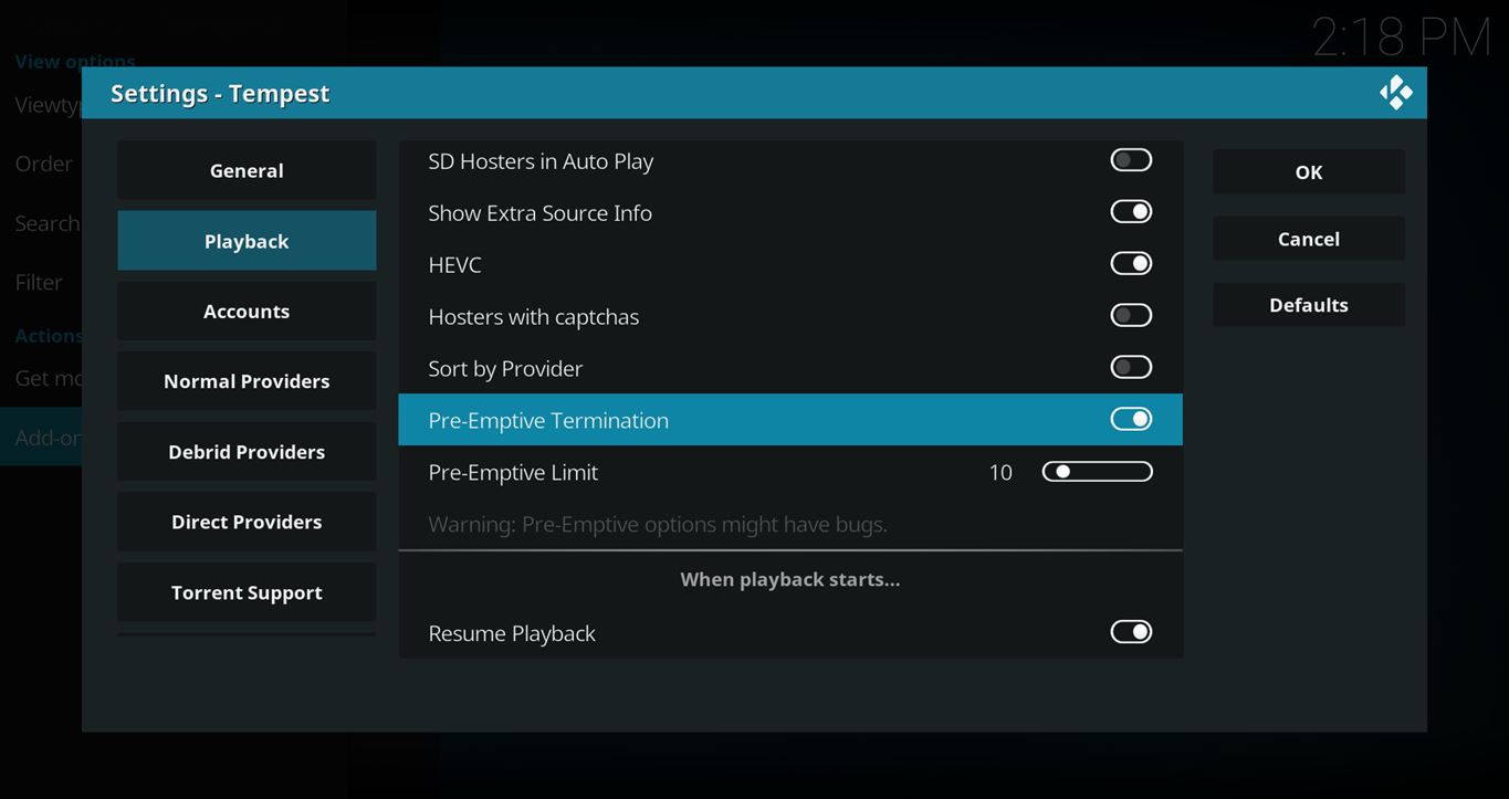Which Kodi Add-ons Have the Pre-emptive Termination Feature?