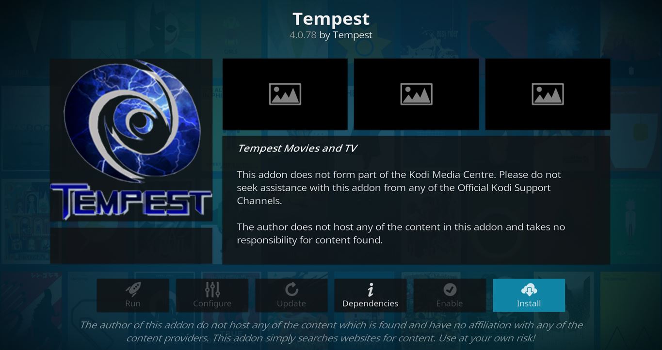 Tempest Kodi Add-on Details and Status