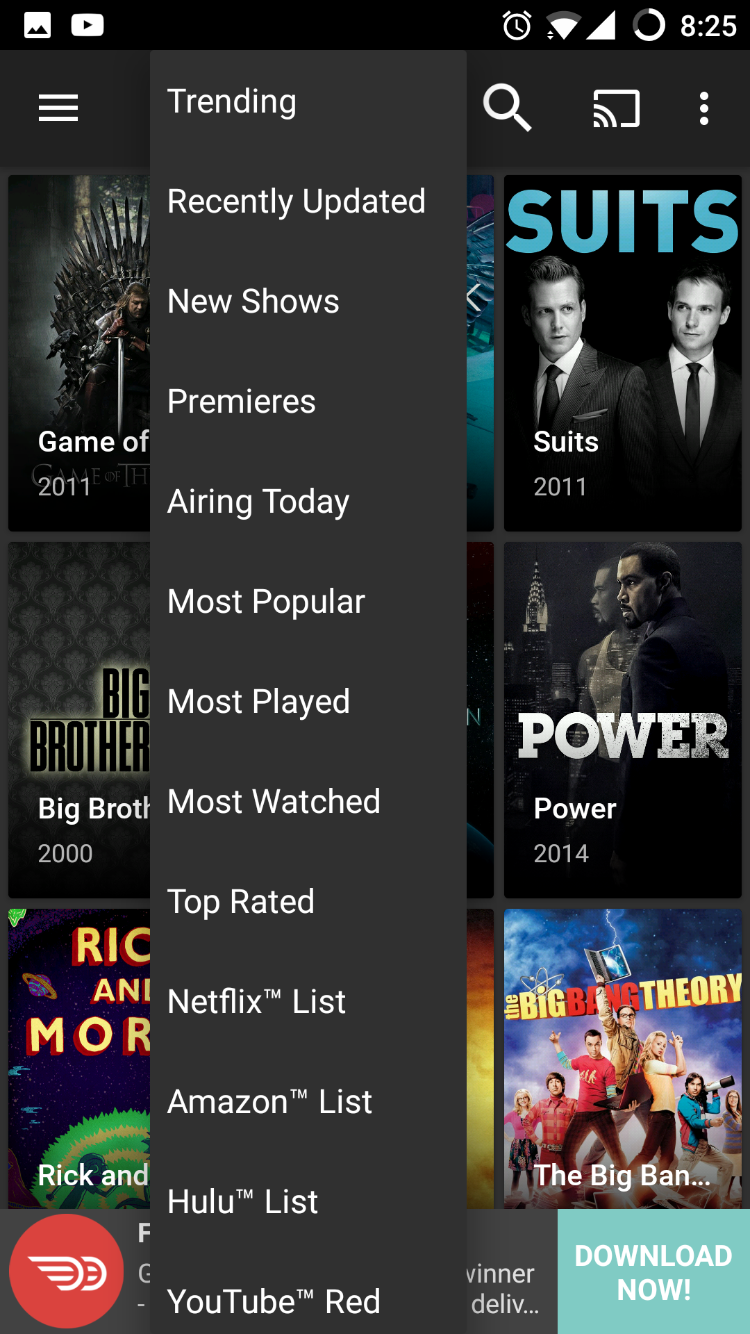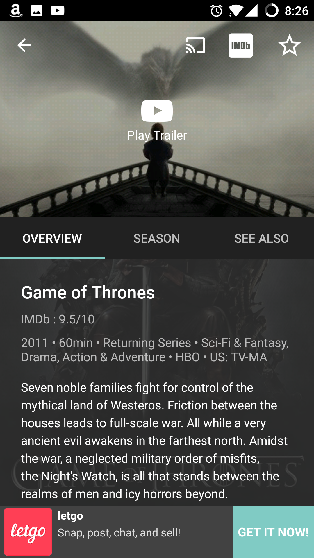 Anyway, about the looks of the app, it’s exactly how I pictured this kind of app should look. Nice dark gray theme, modern Android material design, prominent show artwork, and easy to browse and search for what you’re looking for.