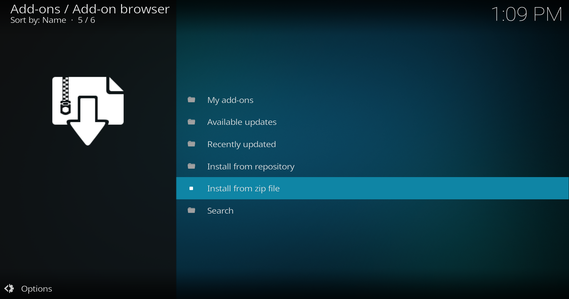 - Go to Settings > Add-ons > Install from zip file