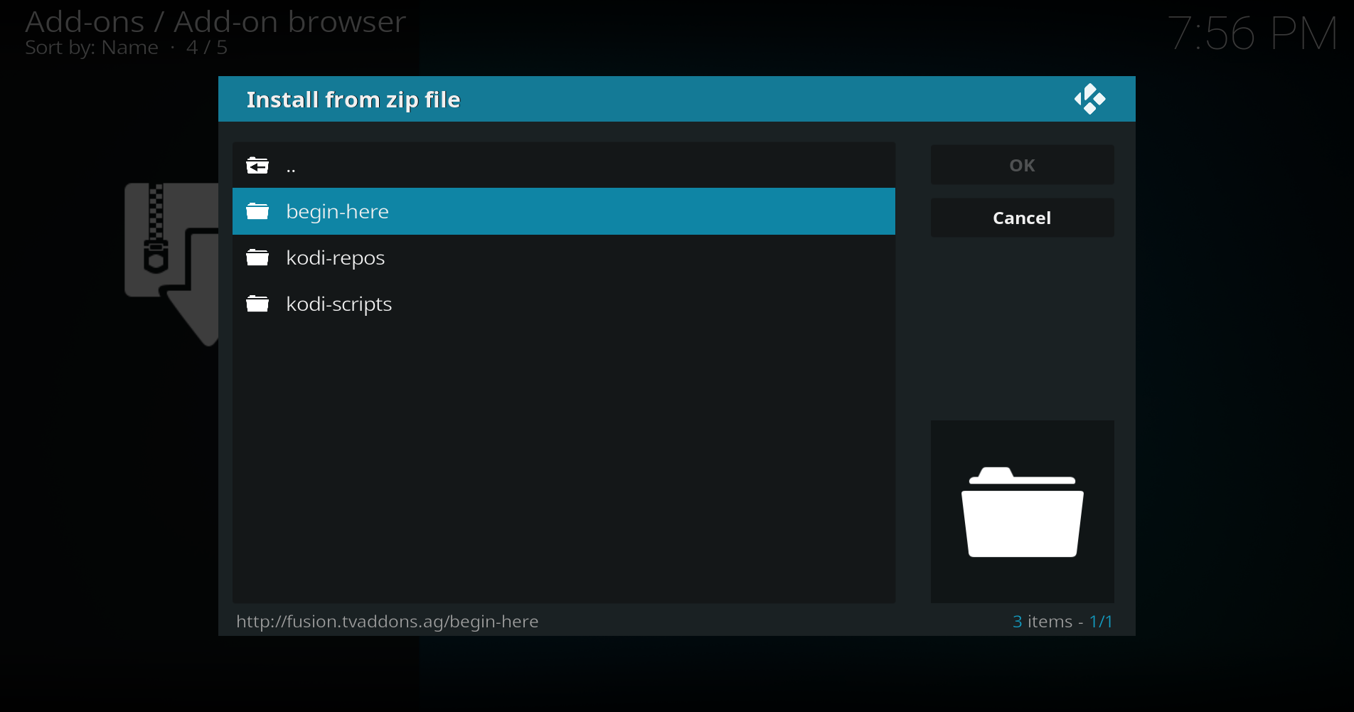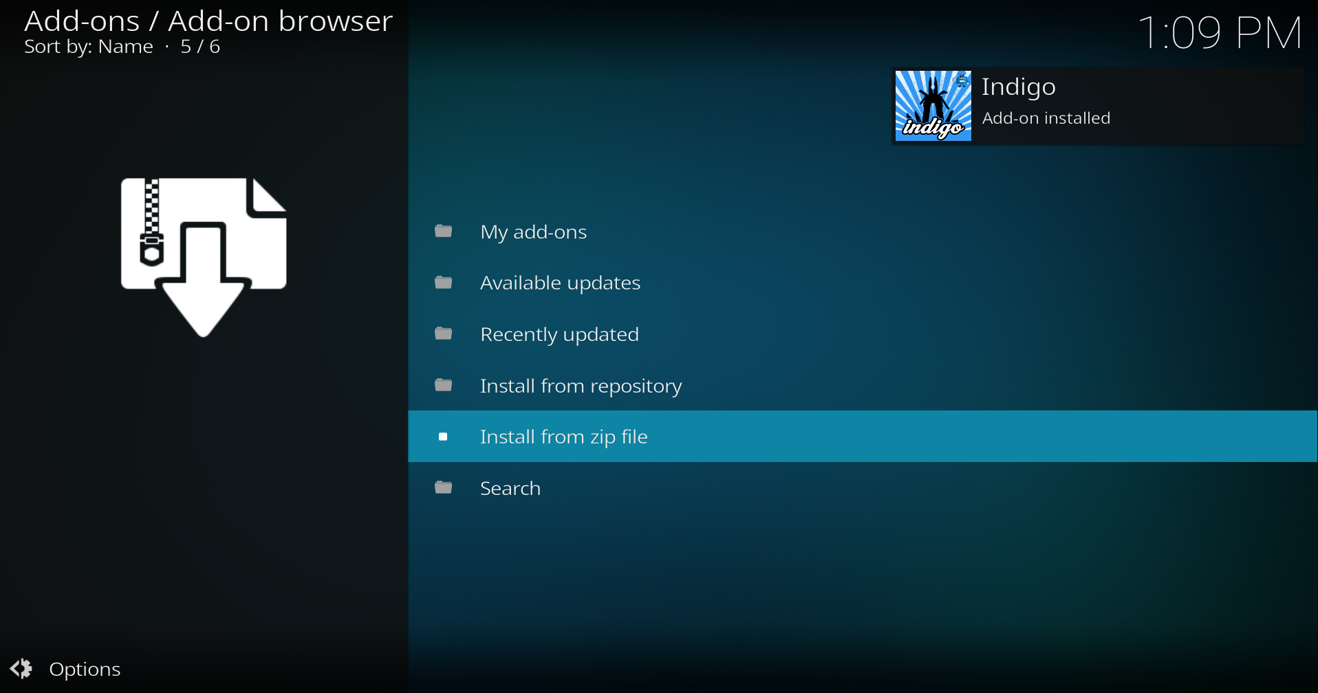 - Select begin-here > plugin.program.indigo-x.x.x.zip